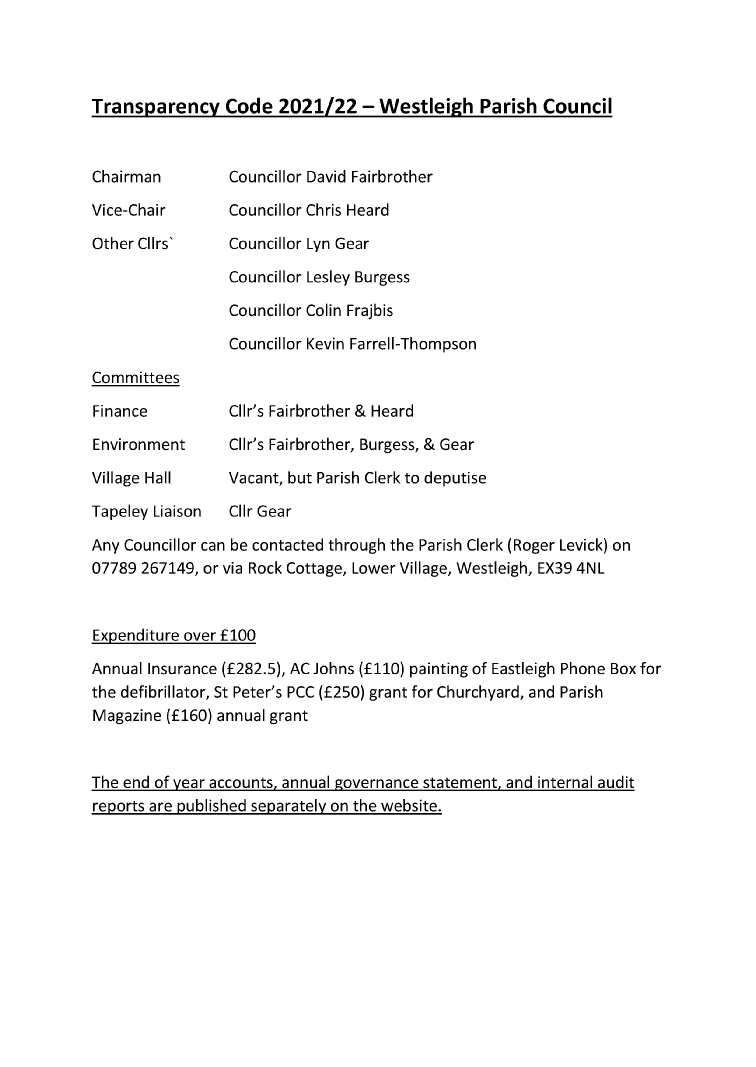 Click on the DOC (Word) or PDF symbol to read or download the General Notice of Registerable Interests of the 2023 Westleigh Parish Councillors.